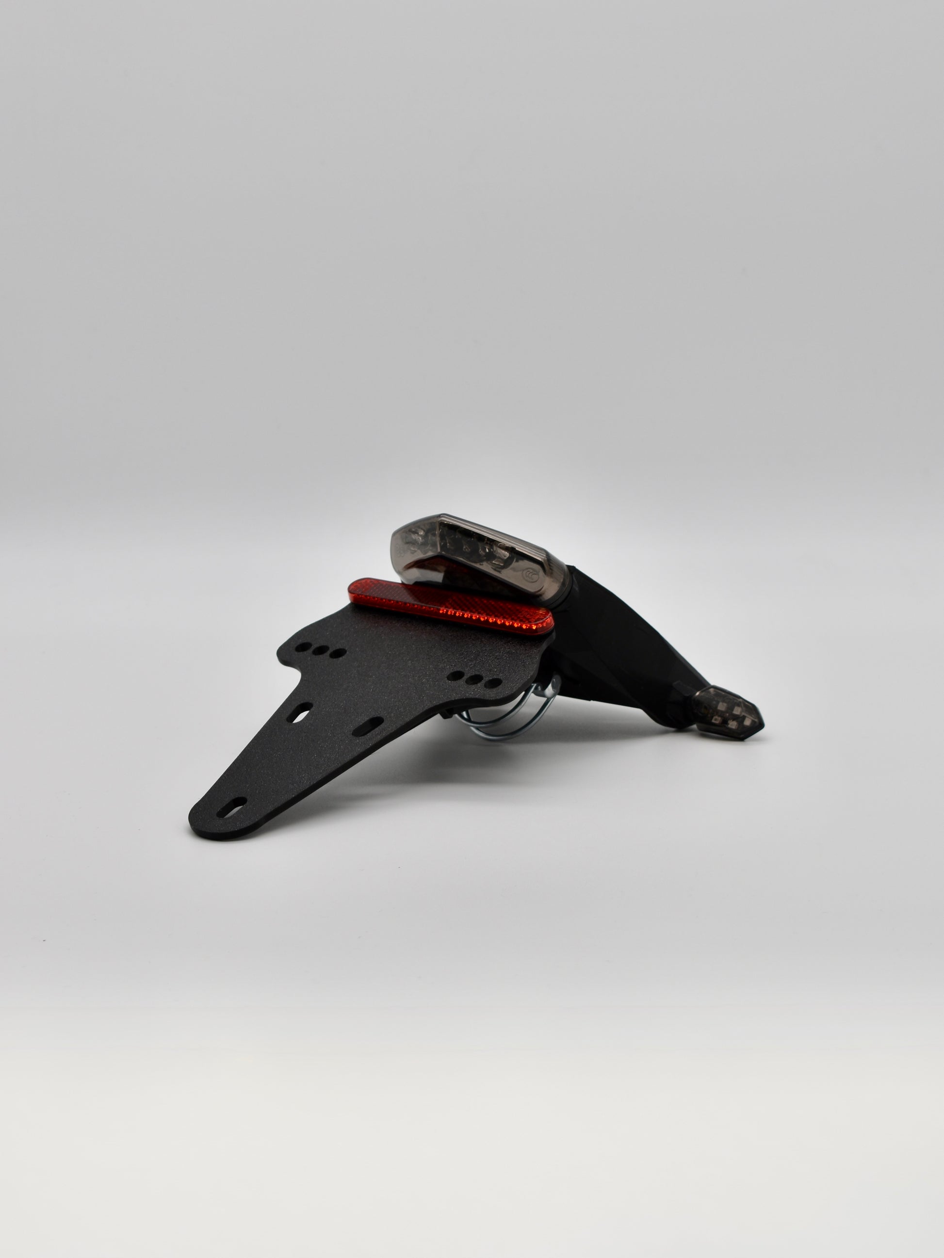 Wähle dein Motorradmodell aus und entscheide, ob du den Kennzeichenhalter mit integriertem Rücklicht (inkl. Kennzeichenbeleuchtung und E-Nummer) oder LED-Blinkern (E-Nummer) ergänzen möchtest.