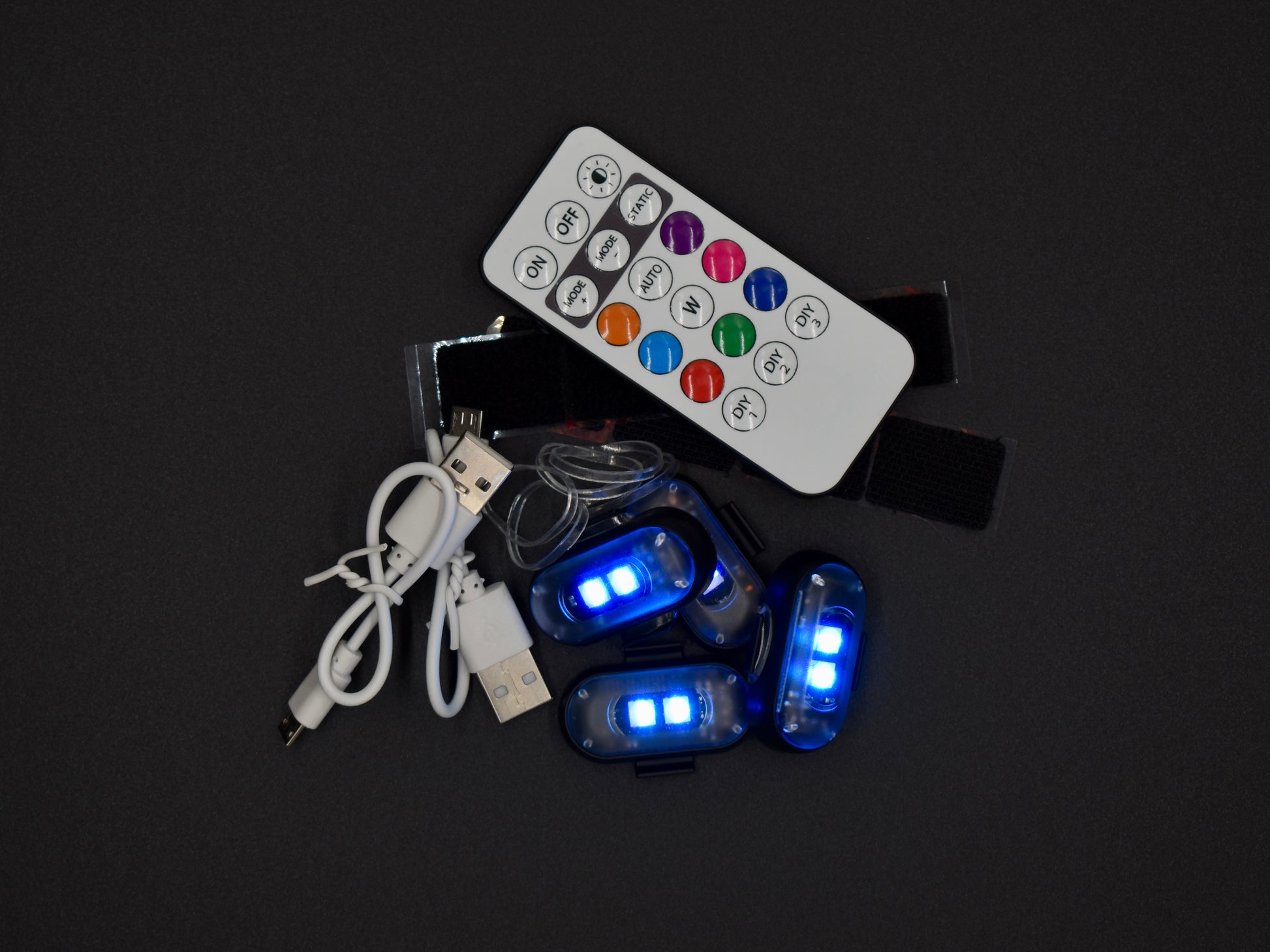 Dank Klettbefestigung oder Gummibändern lassen sich die LEDs in wenigen Sekunden anbringen und wieder entfernen – ganz ohne Werkzeug.