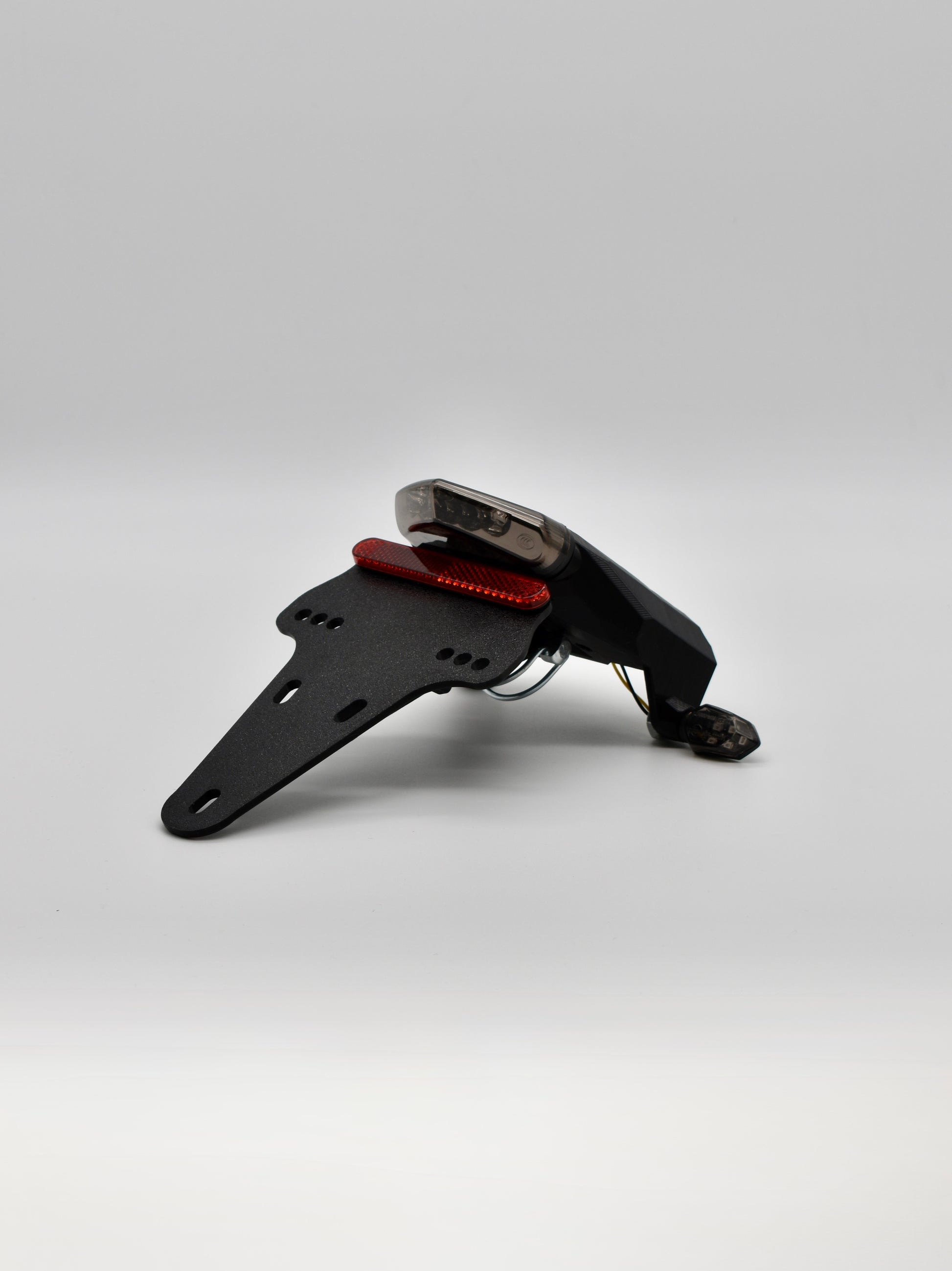 Wähle dein Motorradmodell aus und entscheide, ob du den Kennzeichenhalter mit integriertem Rücklicht (inkl. Kennzeichenbeleuchtung und E-Nummer) oder LED-Blinkern (E-Nummer) ergänzen möchtest.